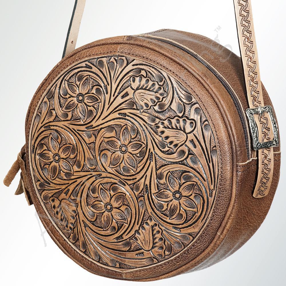 American Darling Women's Hand Tooled Genuine Leather Western Canteen Bag