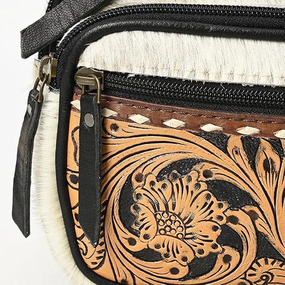 - The handpicked cowhide hair-on genuine leather not only adds a soft and tactile element but also serves as an embellishment, enhancing its overall western appearance
