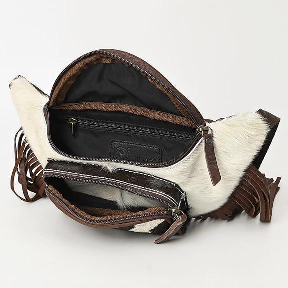 - The handpicked cowhide hair-on genuine leather not only adds a soft and tactile element but also serves as an embellishment, enhancing its overall western appearance
