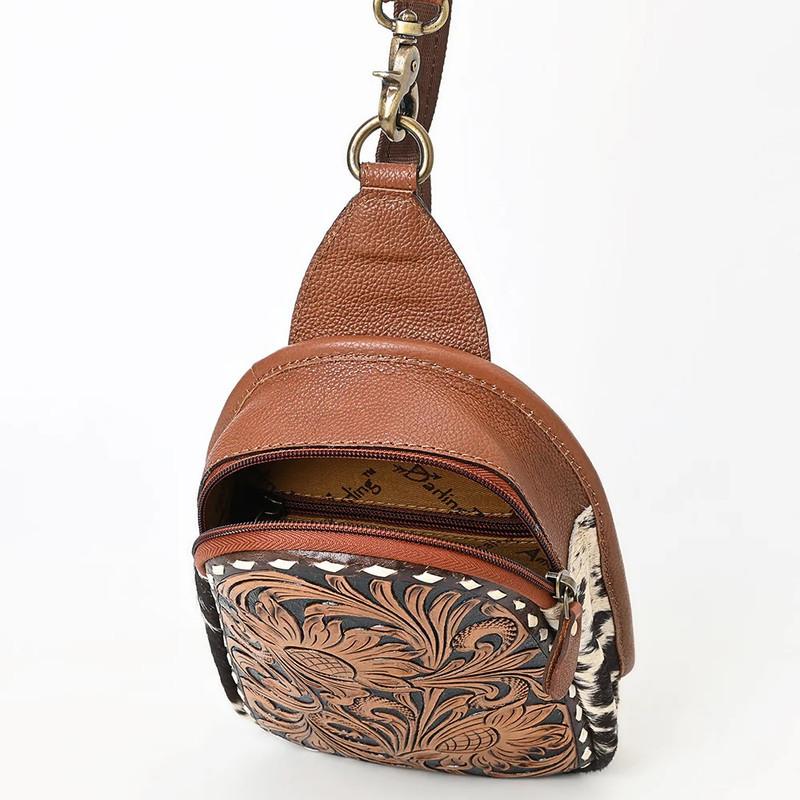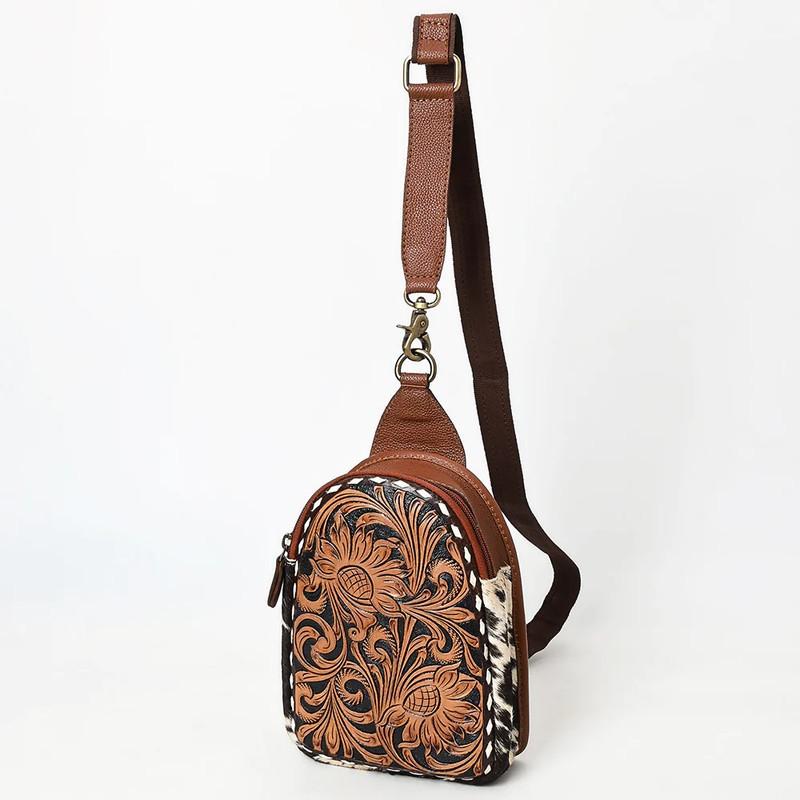 American Darling Women's Brown Hand Tooled Hairon Sling Bag