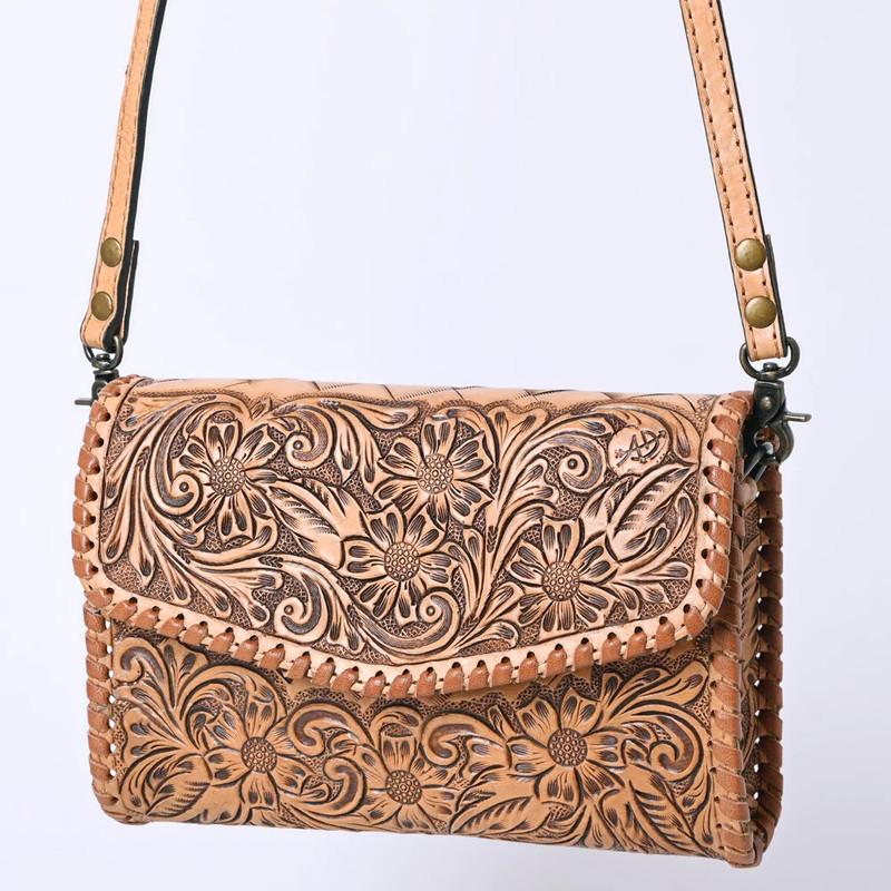 American Darling Women's Brown Hand Tooled Leather Handbag Purse