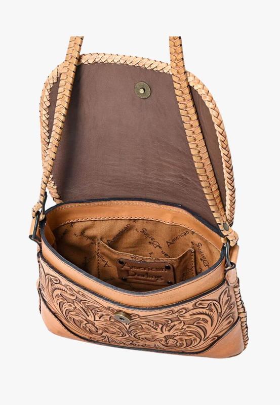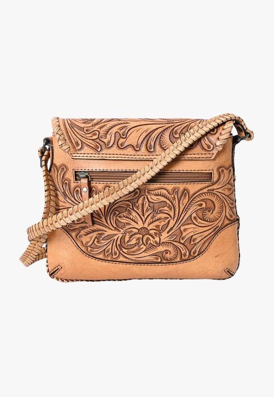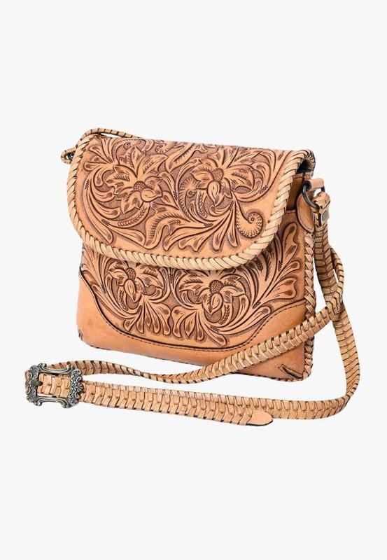 American Darling Women's Tan Medium Tooled Leather Crossbody Bag