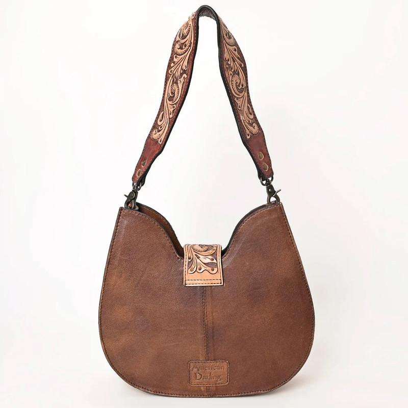 American Darling Women's White Hairon U-Shaped Hand Tooled Bag