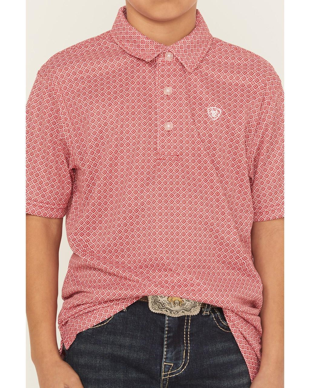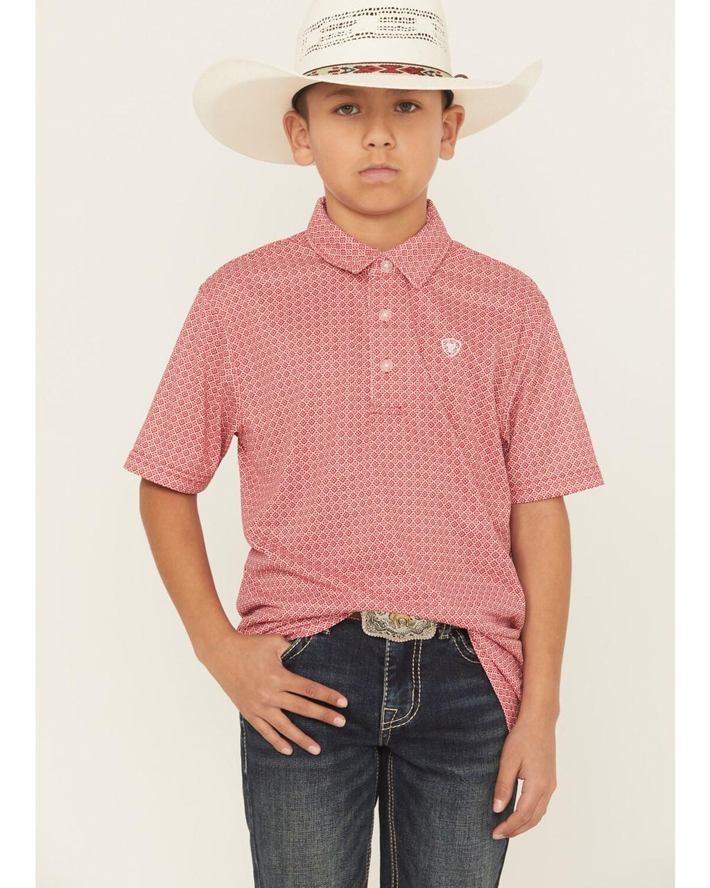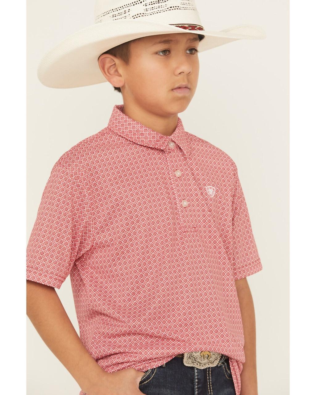 Ariat Boy's Scooter/Red Geo Print Button-Down Polo