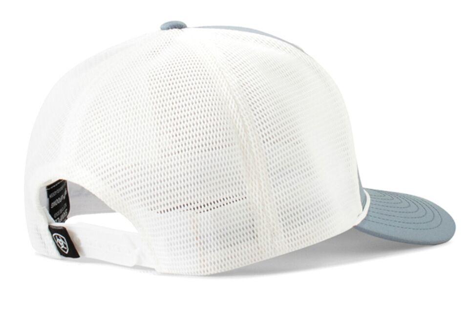 Ariat baseball cap by M&F Western Products. This cap has blue front panels and bill with Ariat name and logo patch on the front. It has a green, blue and orange southwest patch and a white mesh back and snap back closure for that perfect fit. It ha a white braid at the base of the front panels for a perfect accent. Snap back closure for that perfect fit. 100% Polyester.