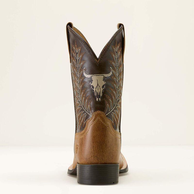Your mini buckaroo will love matching Dad in this cool steer skull boot. Sturdy and dependable, it'll keep him comfy whether he's roaming the frontier or the playground.