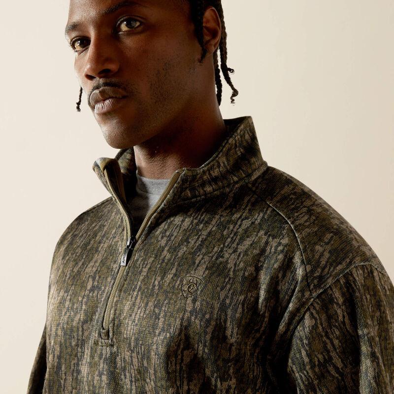 Ariat Men's Green Treebark Camo Caldwell Logo 1/4 Zip Sweater