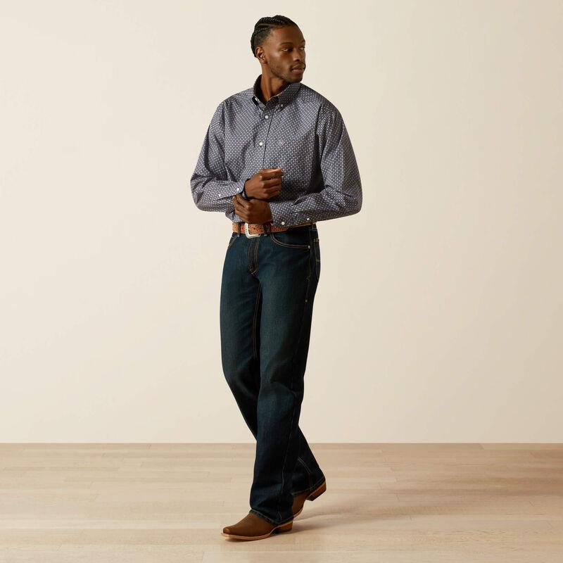 Ariat Men's Navy Wrinkle Free Dale Classic Fit Tall Shirt