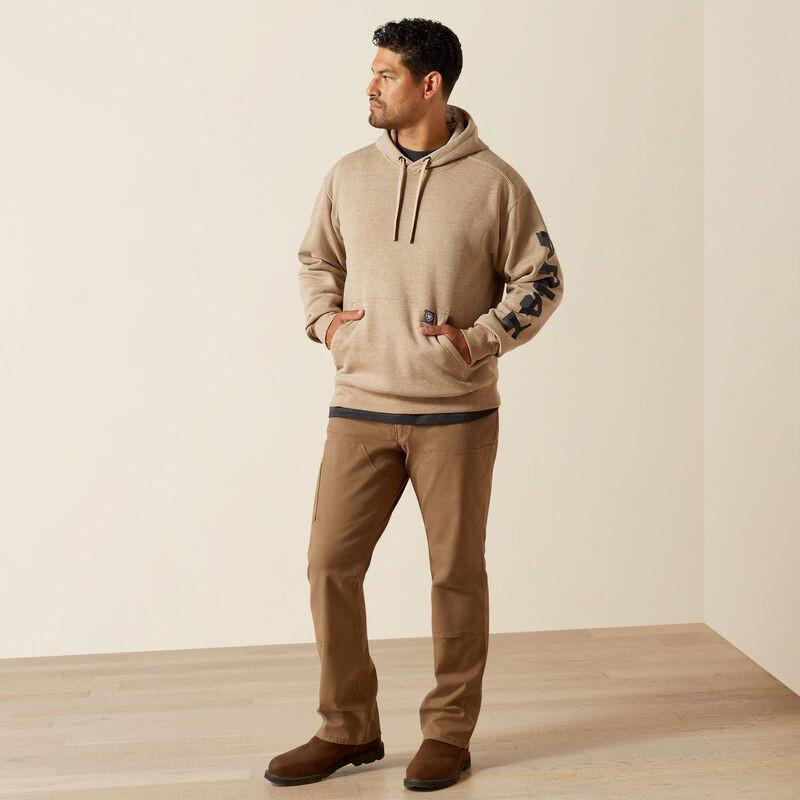 Ariat Men's Oatmeal Heather/Black Rebar Lightweight Logo Hoodie