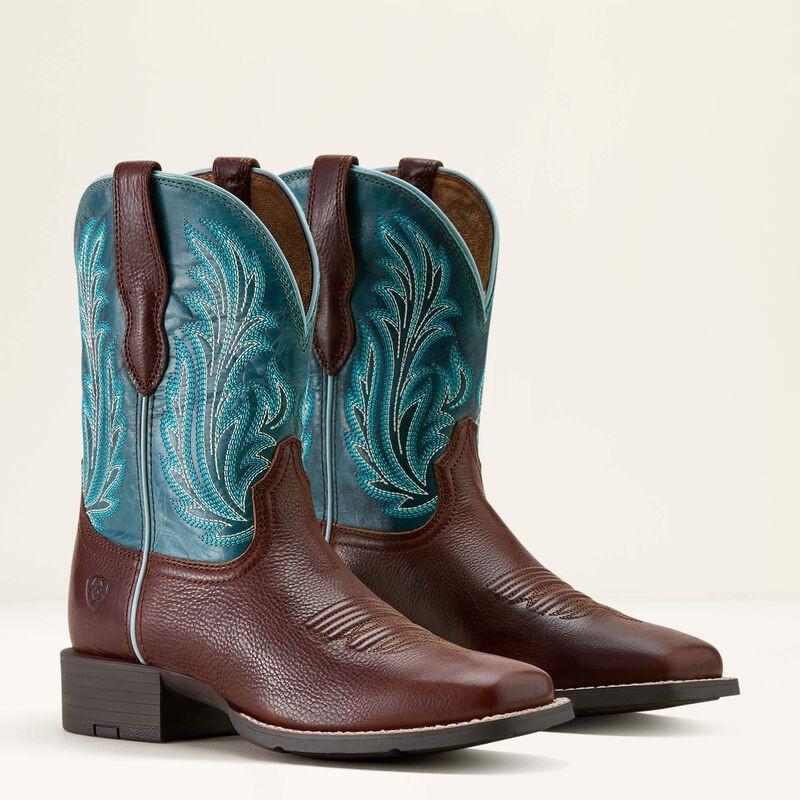 Ariat Women's Oiled Teak/Loyal Blue Round Up Filly Western Boot