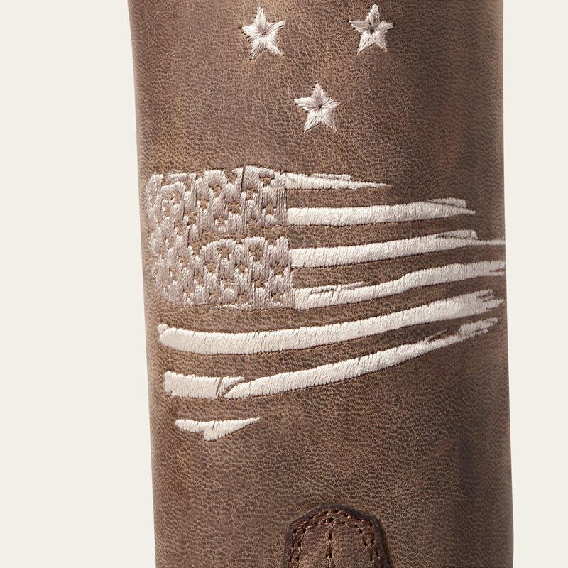 Show off your patriotic side in this beautiful, performance boot. With stars and stripes American flag embroidery and pretty bronze piping, it's a one-of-a-kind style that still feels classically Western.