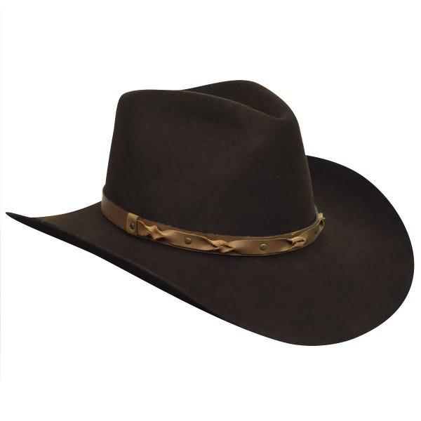 Rugged and reliable, the Navarro has a slightly higher Hondo crown at 4 1/2" inches for more of that true western look. Commanding of its respective terrain, the Navarro will stay true to form as you travel across the land. Featuring a leather band with twists like the twists of an unpredictable journey, and a faux leather interior band that delivers on comfort, the raw edge Navarro is part of Bailey Western's high quality yet affordable 2X Wool collection.