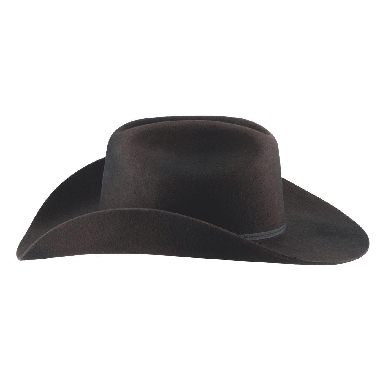 The 4X "Montana Ranch" by Bullhide is a beautiful chocolate wool hat that features a black gross-grain ribbon hat band, accented by a Bullhide brand pin.