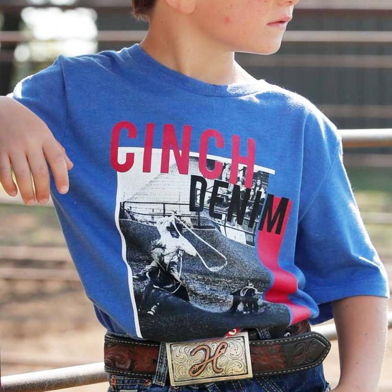 Cinch Boy's Royal Blue Cotton Poly Denim Tee