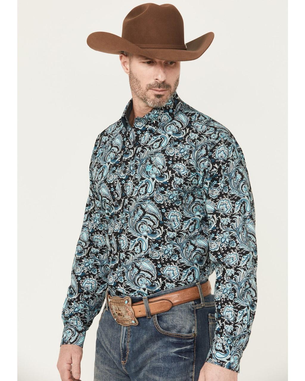 Cinch Men's Black Paisley Print Button Down Western Shirt