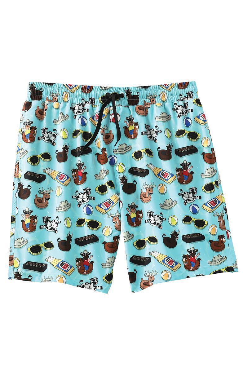 Cinch Men's Blue Cowboy Rodeo Print Swim Trunks
