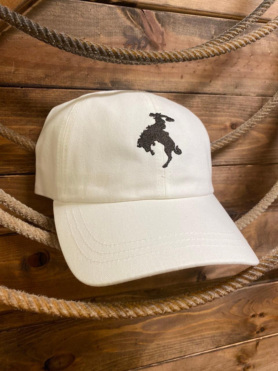 Summertime heat calls for new wardrobe accessories like this white cotton twill dad cap crafted by Cruel Denim. Chase your cowgirl dreams in our low-profile, 6-panel cap that features rodeo embroidery and a secure back buckle closure.