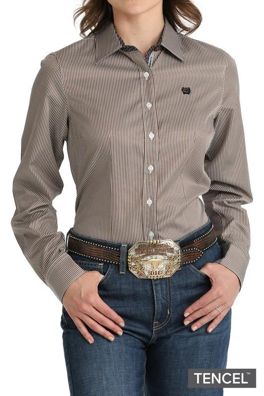 Cinch Women's Brown/Navy Stripe Button Down Western Shirt