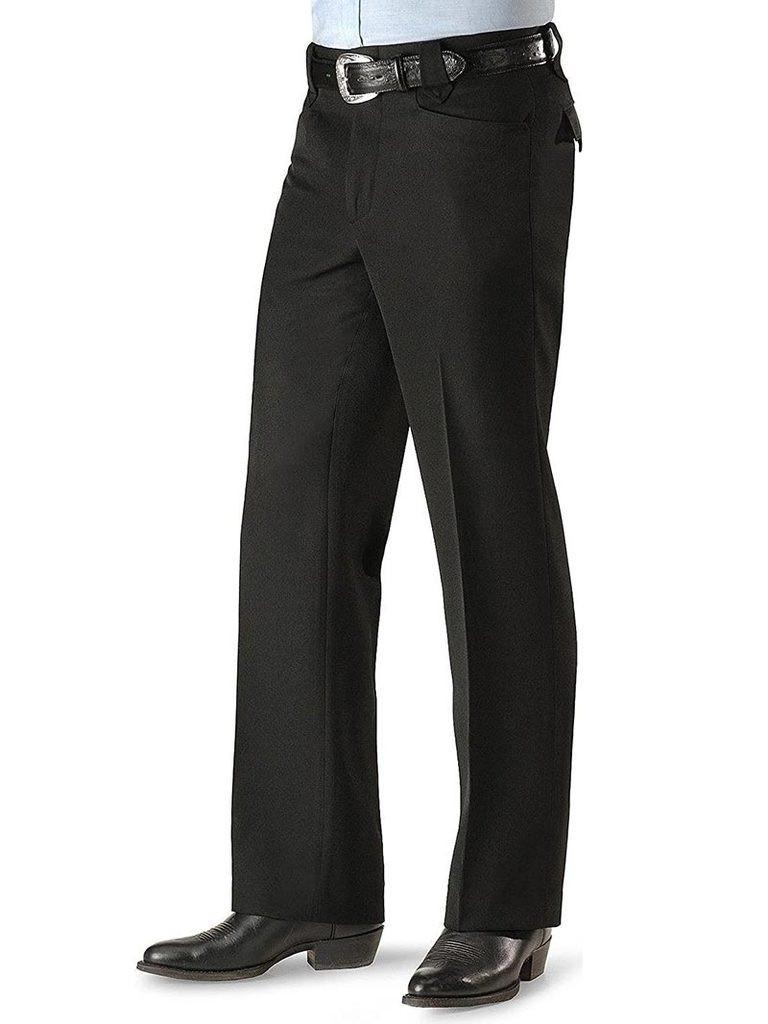Circle S CP4793 Men's Solid Dress Ranch Pants Black - Circle S stretch slacks feature a dressy look that is comfortable and stylish. Dress slacks boast keystone belt loops, western-cut front pockets, and peaked back pocket flaps. Boot-cut legs fit easily over your boots. Circle S stretch slacks are made of 100% stretch polyester.
