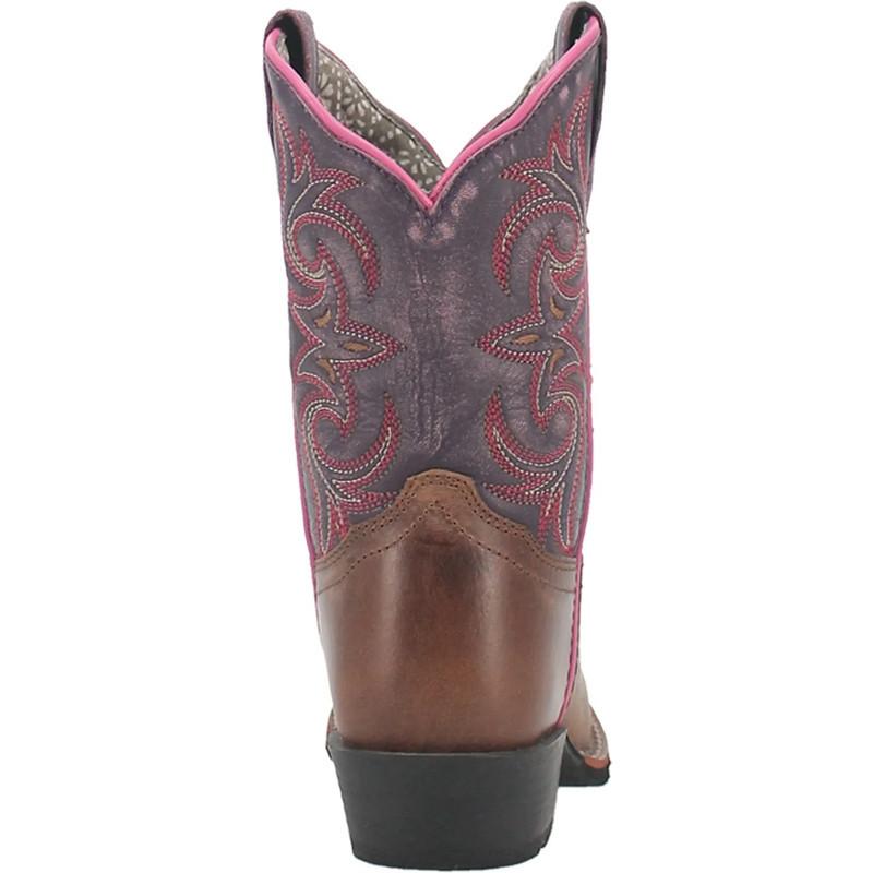 The Majesty is a darling boot with durable leather for life's big adventures. The brown foot is paired with a purple shaft accented in pink stitching and piping. Also comes with a broad square toe, Comfort Cushion insole, and a rubber outsole for traction.