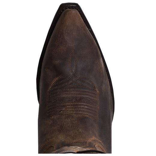 The Renegade is where comfort meets craftsmanship. Made with a distressed bay apache leather foot under a matching shaft that's stitched with a traditional western design. Features include a leather lining, snip toe, removable Soft Strike Orthotic, and a leather outsole with a rough-out finish for a naturally distressed, worn-in look.