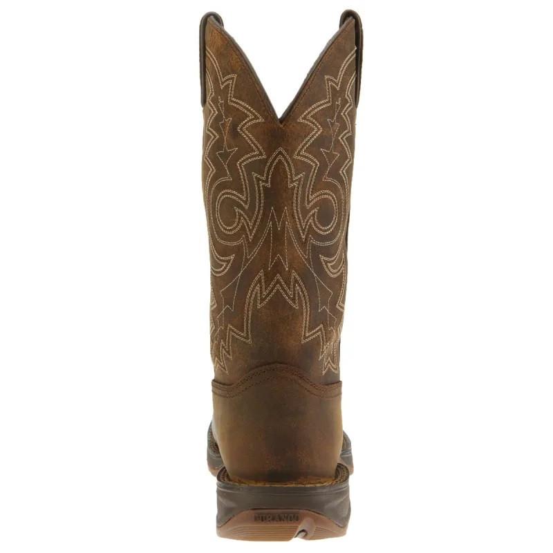 You notice its ruggedness and how the brown full-grain leather looks distressed. You observe the fancy stitching on the shaft and the toe bug stitch on the foot. You see that it has a very traditional looking yet roomy square toe. You're aware of the dipped topline and sturdy pull tabs. Upon first inspection, it looks like this 12" Rebel by Durango is an ordinary pull-on Western boot. While it is an incredibly masculine-looking Western, this boot is crafted for work. The double row of welt stitching is incredibly and holds this men's boot together. Its protection comes from the steel toe; because this men's Western has met the ASTM F2413 I/75 C/75 Protective Toe Classification, it can withstand up to 75 lbs. of impact and compression. It has also met the ASTM Electrical Hazard Standard. These Rebel by Durango boots are also able to keep your feet comfortable by having a cushioned insole within the interior. It is contoured, it was designed with ventilation so your feet are more likely to stay cool and it's removable so you can always add in more padding once you have worn this footbed down. A tempered steel shank has been built-in to this footwear, it aids in giving you steady footing and this feature will support your foot's arch. The outsole is made from a combination of rubber and EVA; you will only benefit from its durability, how much cushioning you receive and how lightweight it is. The rebel heel is only 1 3/8" high, so you will be able to maintain a steady stride and work comfortably. To find a men's work boot that looks this good, has so much durability and has safety features to boot is not an easy task. So, if the idea of going to work in comfortable, protective and rugged-looking footwear appeals to you, these Rebel by Durango Steel Toe Pull-On Western Boot are perfect!