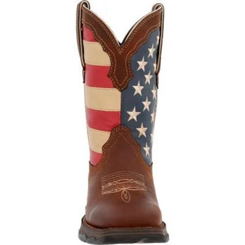 This Lady Rebel by Durango® Western Boot will be the most attention-grabbing item in your closet. The stunning upper has the American flag on the shaft, full-grain brown leather that looks fashionably distressed, toe bug stitching and pull tabs that make it possible to get this pull-on boot on/off effortlessly. The cushioned footbed is contoured, ventilated and removable. You will receive blissful cushioning; it will help keep your feet smelling fresh by exposing it to air, but the best part is, since it's removable you are always able to add in more cushioning once it begins to wear down. These 10" Lady Rebel by Durango® Pull-On Western Boots are stylish, patriotic and comfortable. In essence, these are the perfect boots for you to be wearing.