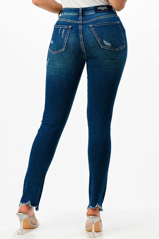 Grace In LA Women's Distressed Medium Blue Knit Denim Mid Rise Skinny Jean