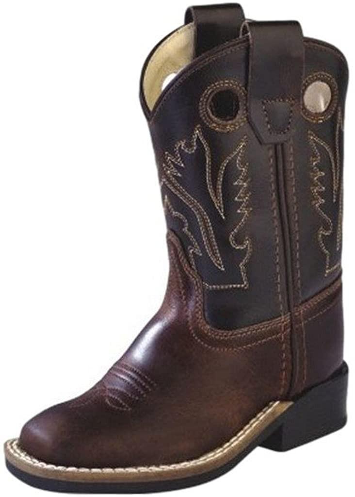 These stylish boys brown leather cowboy boots from Old West feature a broad square toe, natural welt, and rubber outsole. Constructed from high quality leather and man-made materials, these boots are durable enough for everyday wear. Your little cowboy will love toying around in these western style boots.