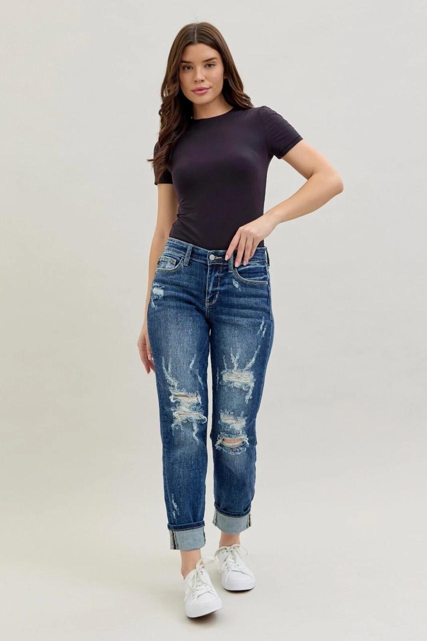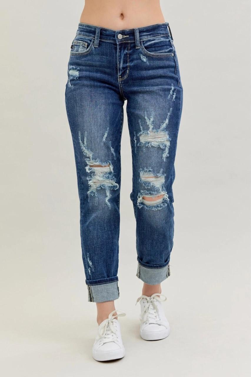 Jude Blue Women's Medium Blue Mid-Rise Cuffed Destroy Boyfriend Jean