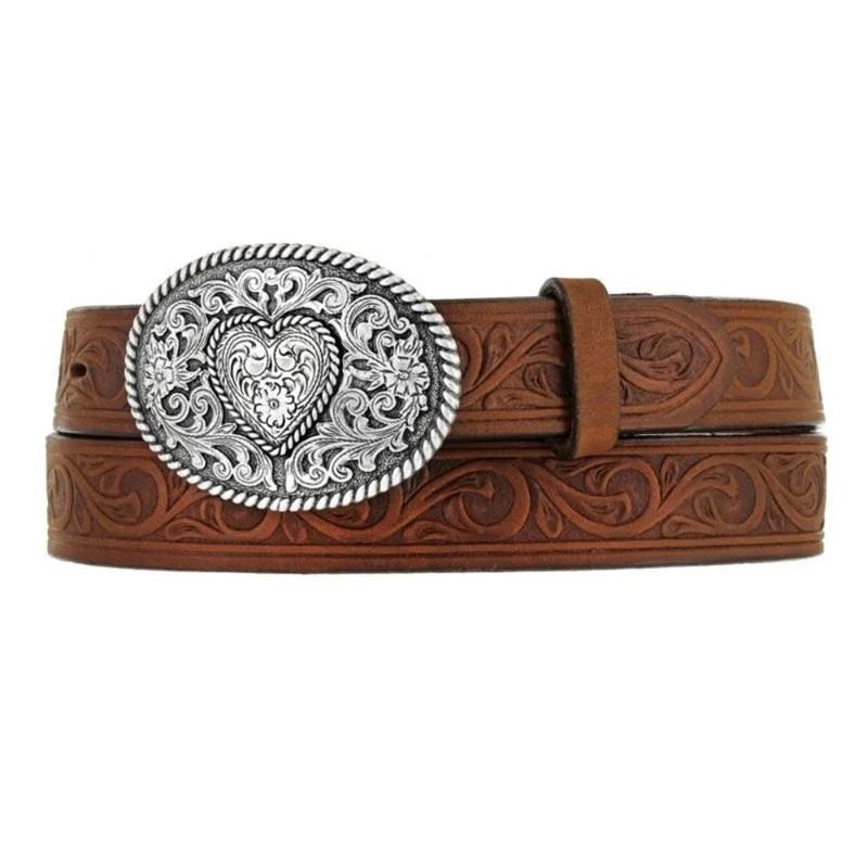 Justin Girl's Brown Trophy Western Leather Belt With Oval Buckle