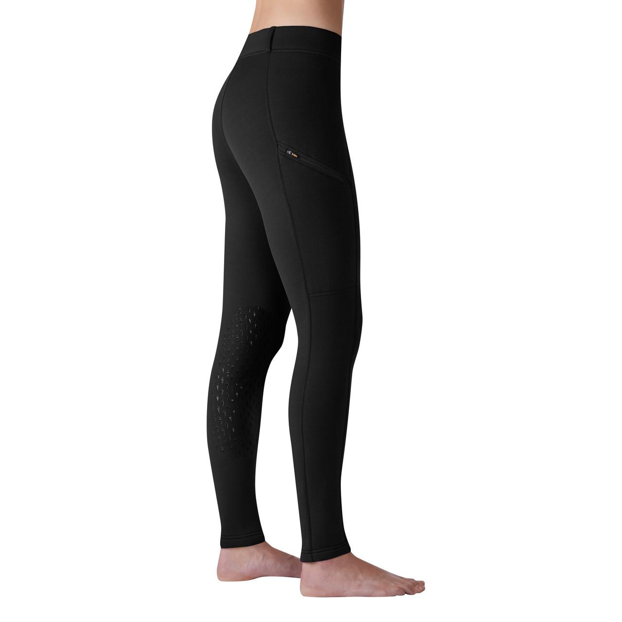 Feel as sassy as your steed when the temperatures dip! Soft, brushed fleece inside these thermal-weight tights are insulated to keep you warm and happy. Kerrits Sticks™ along the knee add stick without restricting. Zippered side pockets keep your phone secure. Blissfully comfortable and stretchy, they feel like equestrian sweatpants, but are engineered for cold-weather performance.