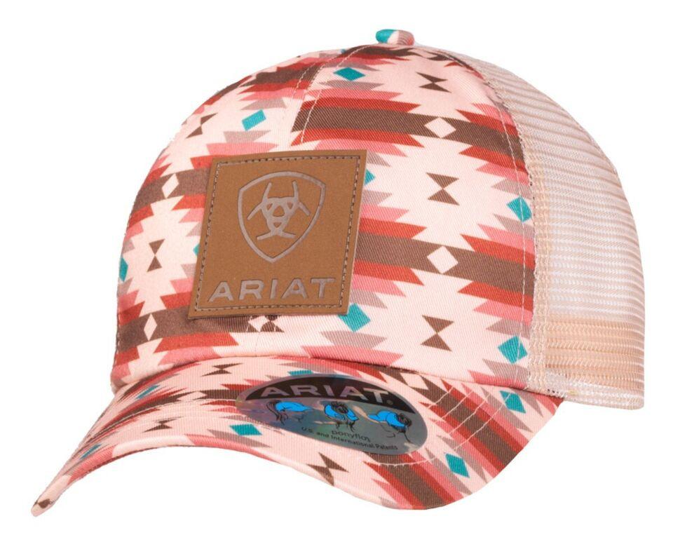 M&F Ariat Girls Pink Aztec Print Logo with Pony Flo Baseball Cap