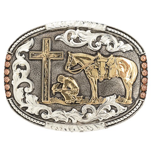M&F Crumrine Men's Silver Oval Cowboy Prayer Belt Buckle