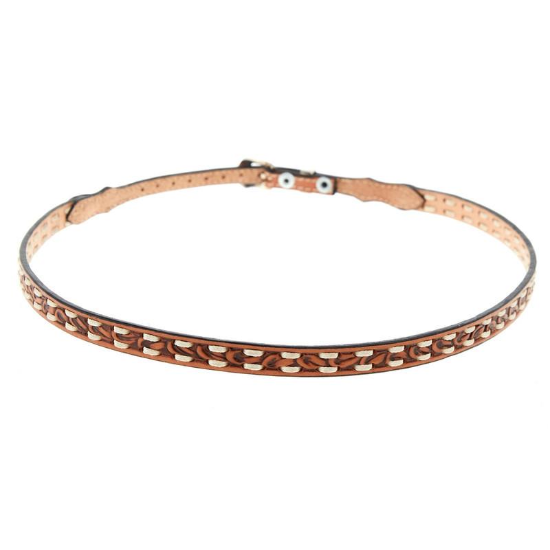 M&F Western Men's Brown Tapered Leather Embossed Laced Hat Band