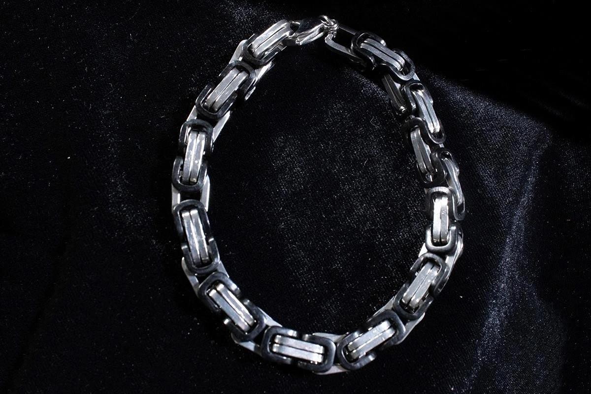 Men's Silver Strike bracelet by M&F Western Products. Black and silver chain that is 9 inches long with a lobster claw clasp.