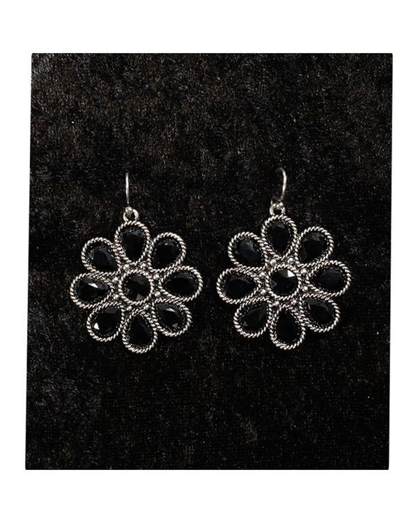M&F Western Silver Strike Women's Black Dangle Flower Earrings