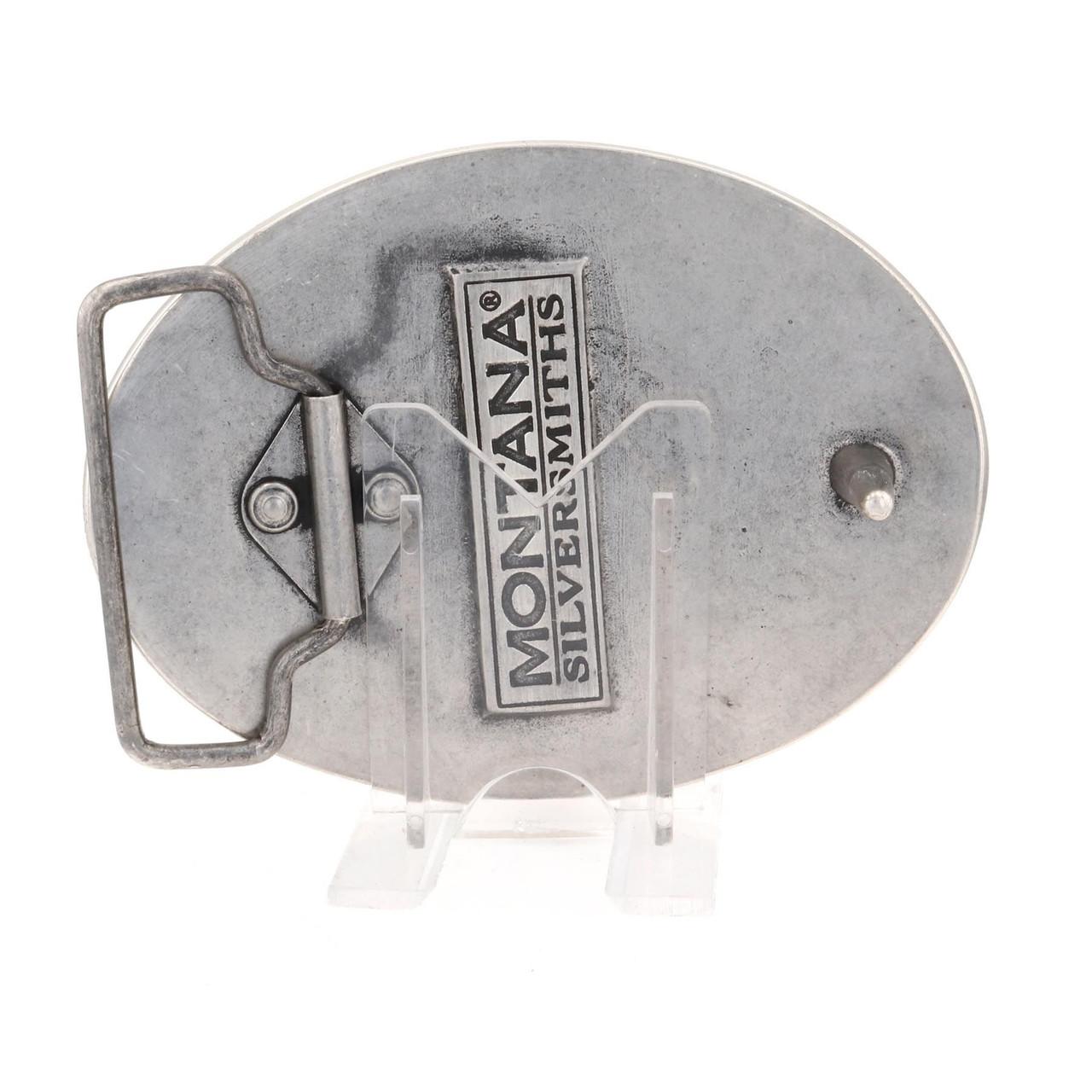 Silver plate over a solid cast white metal alloy base. Paint. Montana Armor protective finish to prevent tarnish.