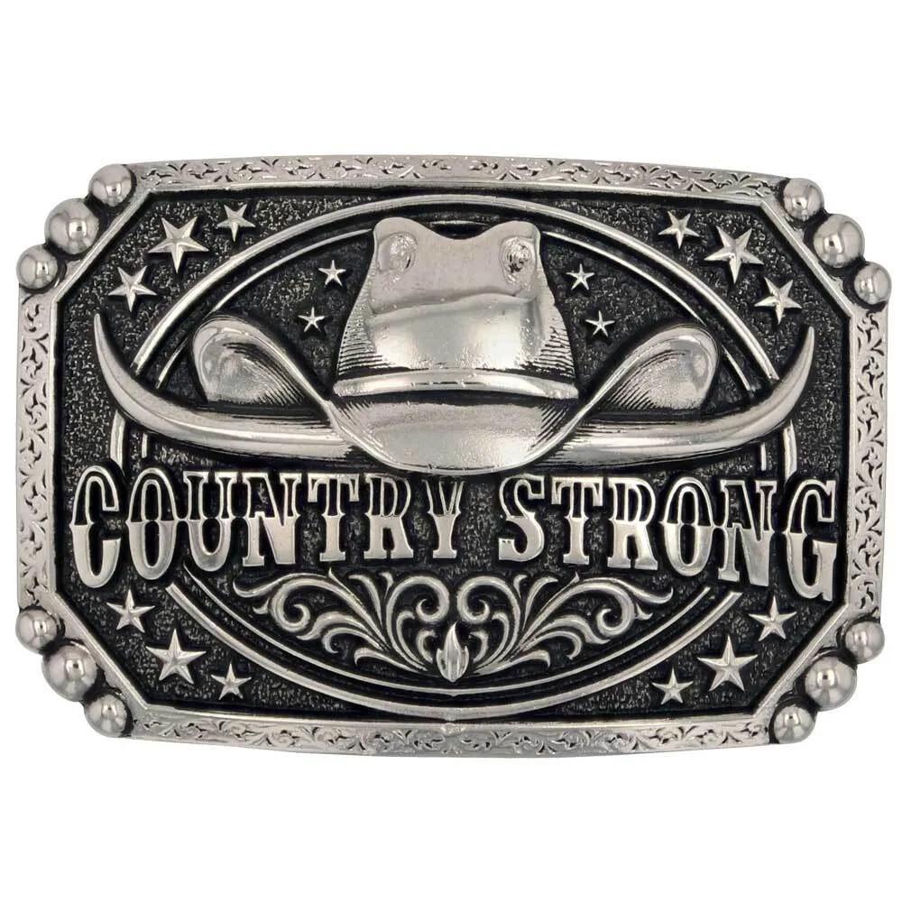 If Country Strong is your refrain you will love this handsome belt buckle. Its silver tone design features a cowboy hat paired with horns for a bold look. Filigree, stars, and beading fill in the spaces to create a stunning and unique design. Standard 1.5 inch swivel. SKU A954