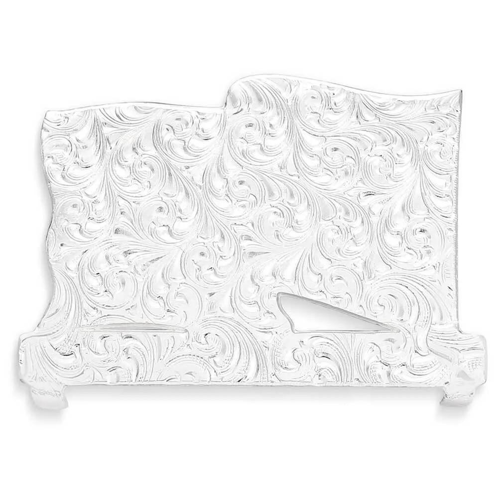 Everything is bigger in Texas, with the Lone Star Promise Hat Flag, your style will be too. This simple, yet alluring design features the Texas flag. This hat flag is designed to be worn on the hatband of a cowboy hat. A bar with silver engravings beneath the flag completes the design.