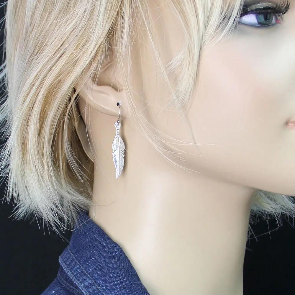 Feathers inspire many meanings, lifting our dreams, thoughts and hopes on the wind, or allowing us a closer connection to the world around us. These small sharp feather earrings are finely engraved and tied at the shaft to dangle from French hooks. The perfect size for casual or formal wear.