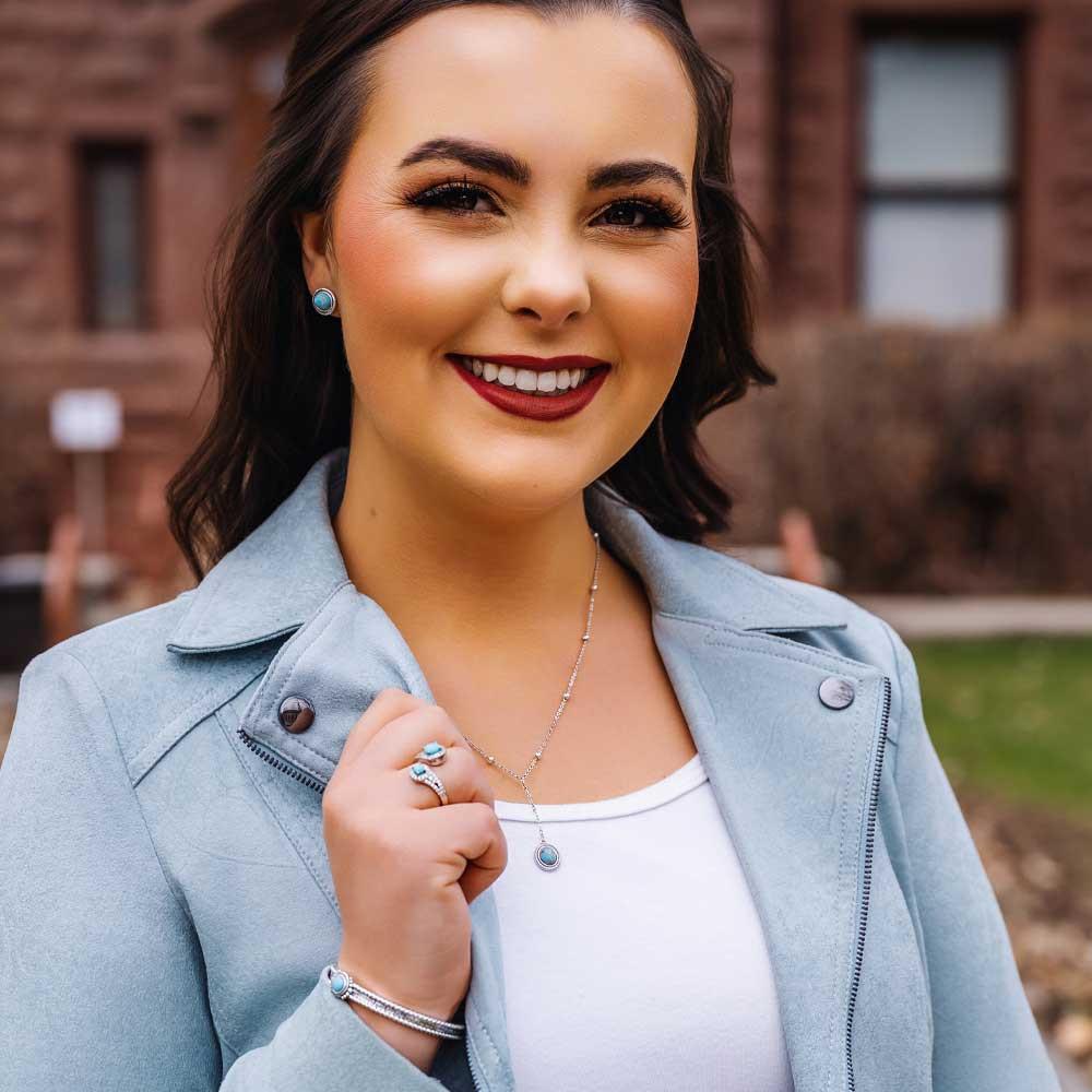 Versatile and striking, the Denim Nights Cuff Bracelet is a staple for any occasion. A round crafted turquoise stone sits at the center, framed by a silver finish with detailed etching on each side. This bracelet brings together everyday wearability and Western charm. Stone color may vary.