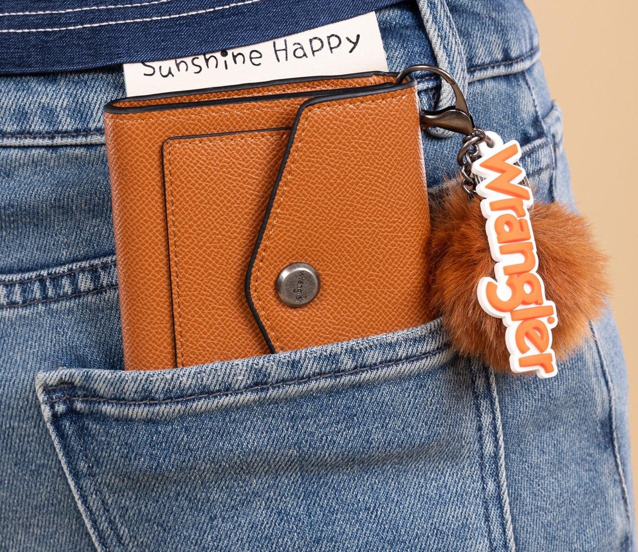 Montana West Wrangler Brown Tri-Fold Wallet With Keyring Pom Pom