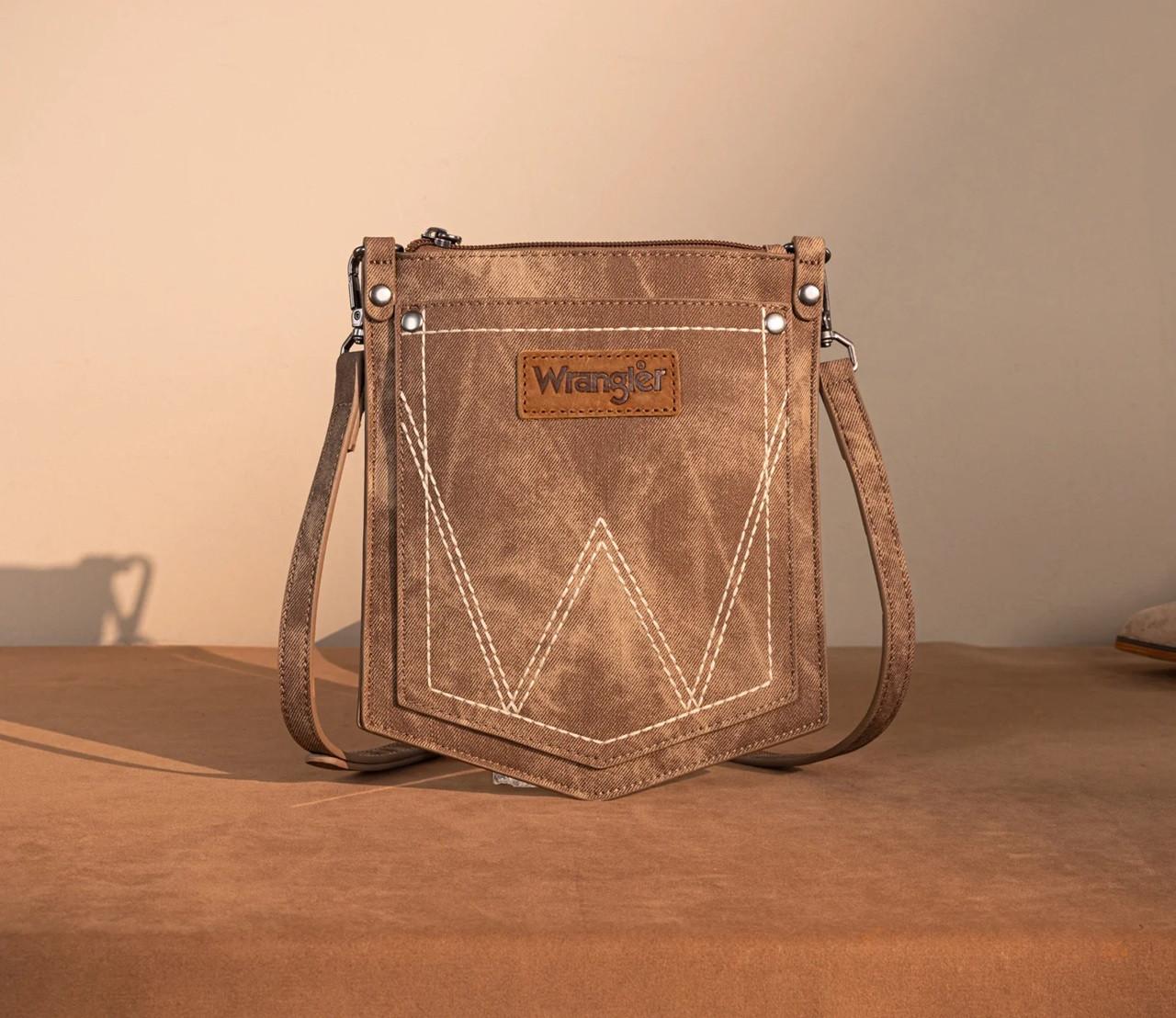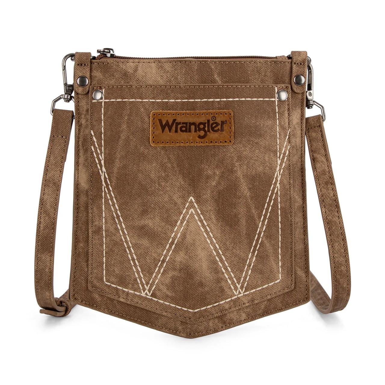 Montana West Wrangler Brown "W" Stitch Water Repellent Denim Pocket Crossbody