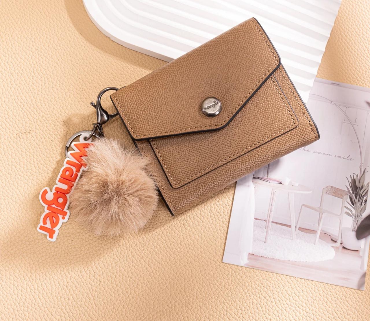 Montana West Wrangler Dark Khaki Tri-Fold Wallet With Keyring Pom Pom