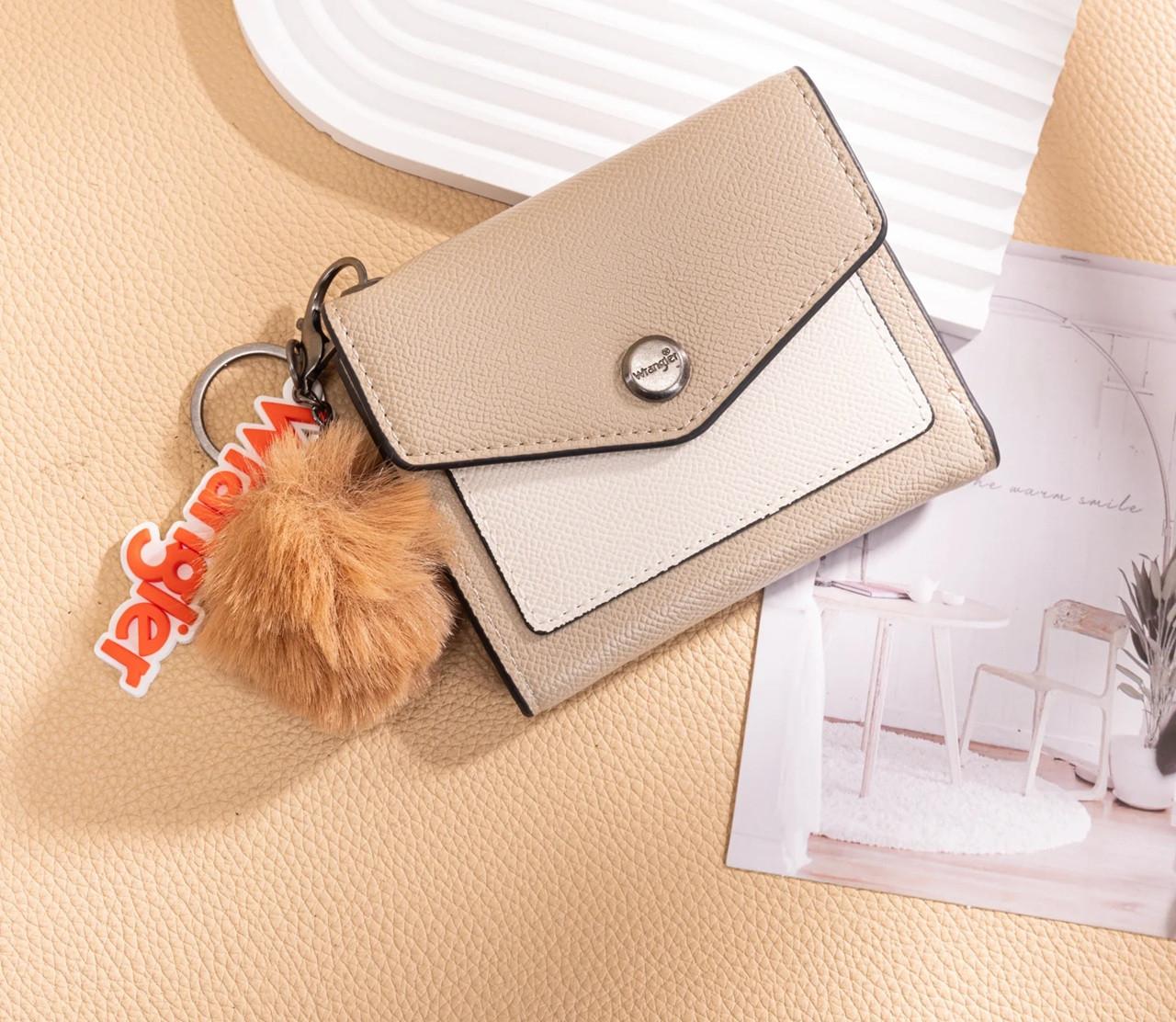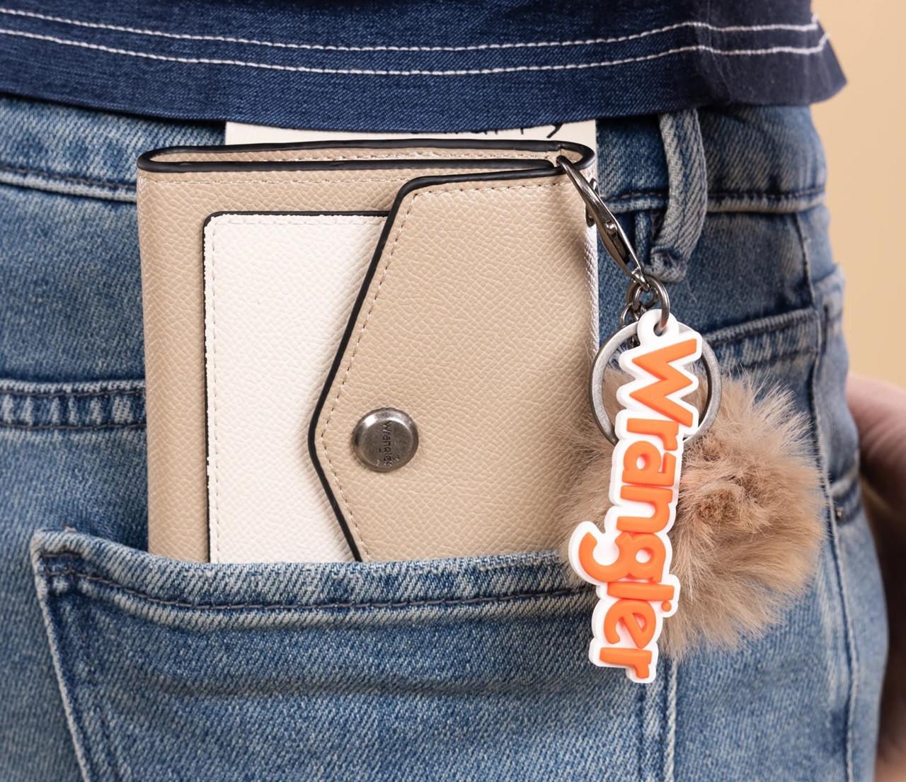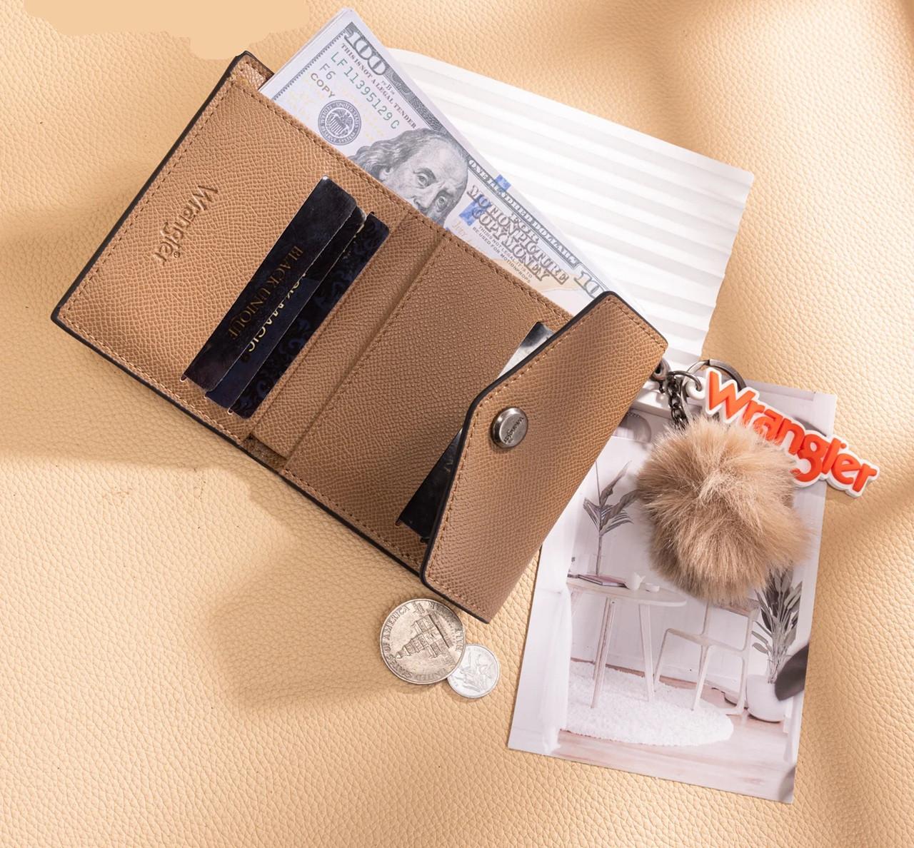 Montana West Wrangler Khaki Tan Tri-Fold Wallet With Keyring Pom Pom