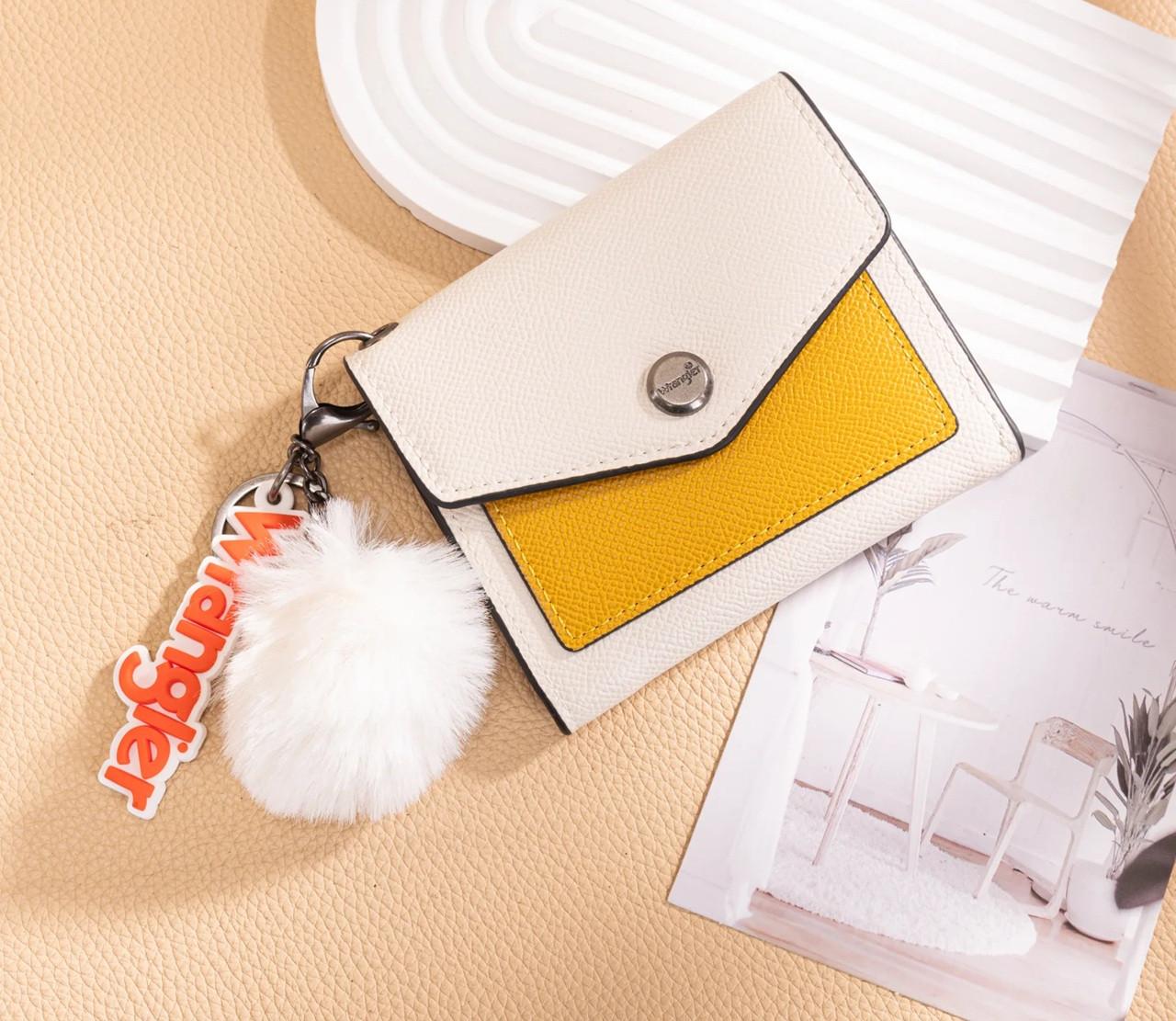 Montana West Wrangler Tan Brown Tri-Fold Wallet With Keyring Pom Pom