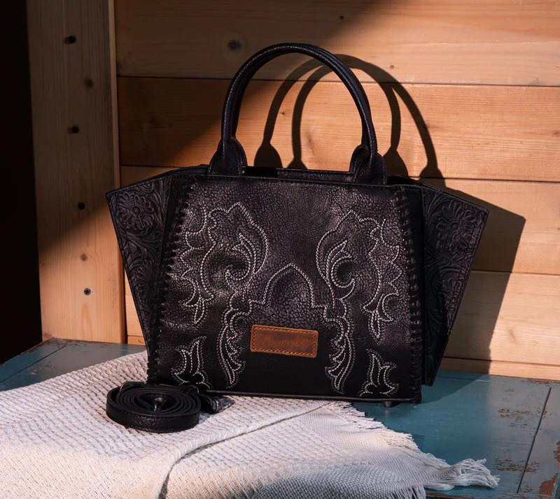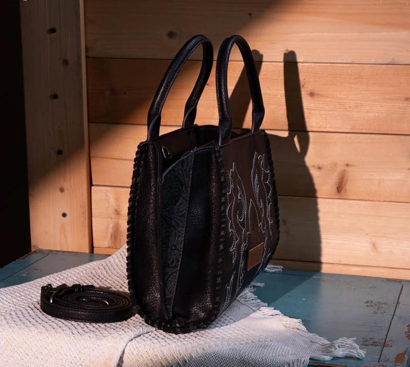 Montana West Wrangler Women's Black Embroidered Trapezoid Concealed Carry Tote Bag