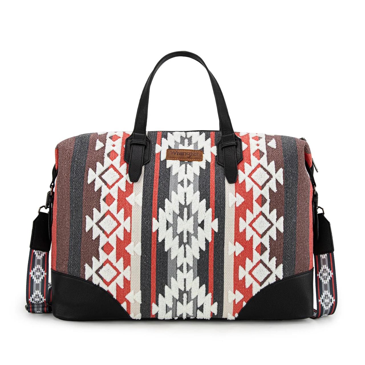 Montana West Wrangler Women's Black Sherpa Aztec Canvas Duffle Bag