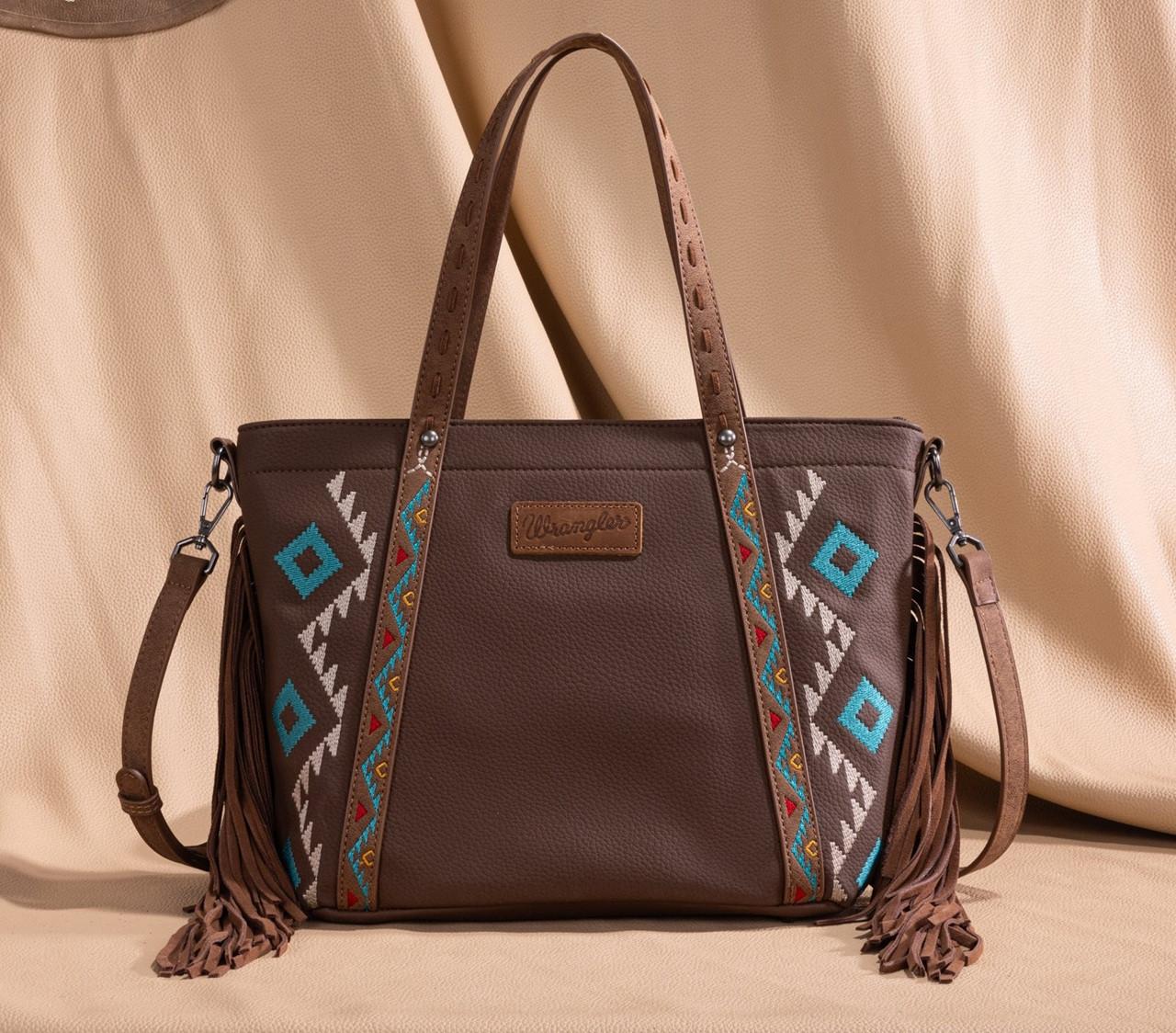 Montana West Wrangler Women's Brown Aztec Embroidered Crossbody Bag